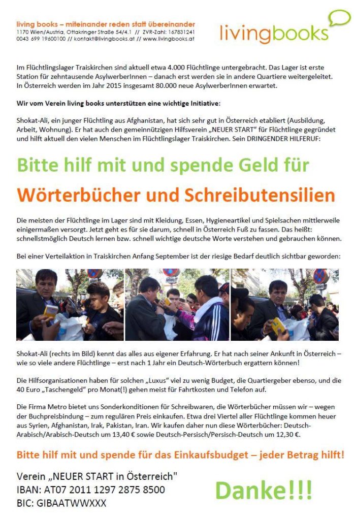 Bitte hilf mit und spende Geld für Wörterbücher und Schreibutensilien – 2015