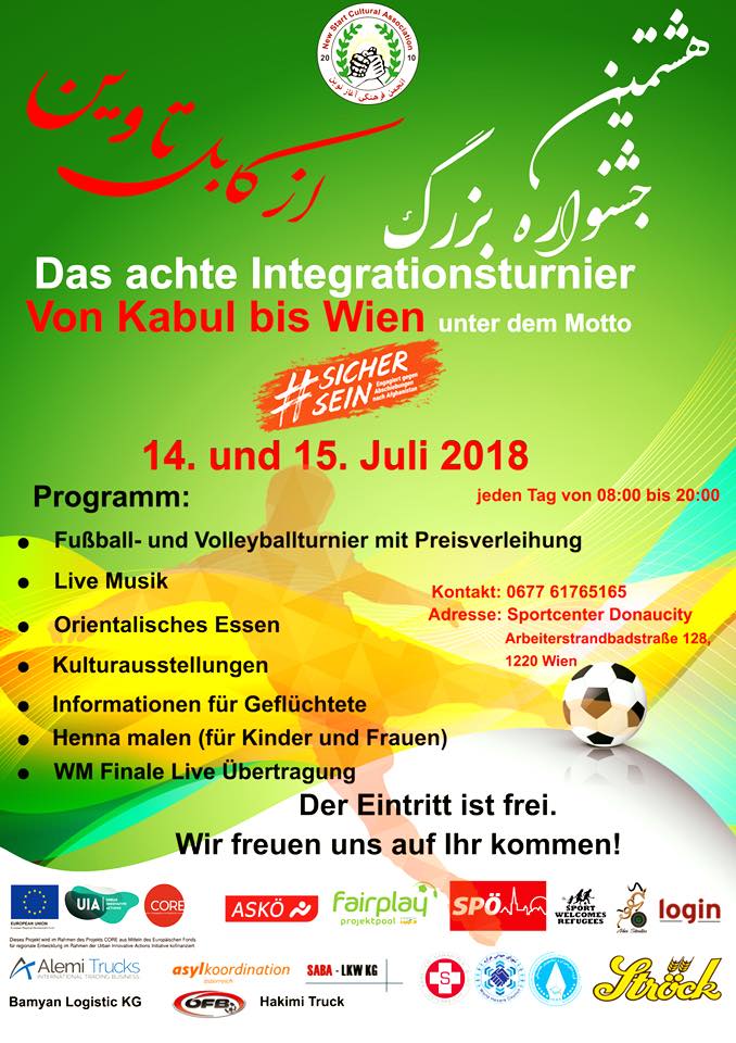 به تماشای فوتبال, والیبال و نمایش حرکات رزمی بنشینیم , موسیقی زنده گوش بدهیم, از خوردن غذا و نوشیدنی لذت ببریم از غرفه های مختلف اطلاع رسانی در بخشهای بازار کار, ادغام از طریق تحصیل, قوانین جدید پناهندگی و اطلاعات عمومی در زمینه پناهندگی و کاریابی مستفید شویم و در آخر ورزشکاران موفق و جوان خود را تشویق و حمایت کنیم و دستاوردهایشان را قدر بدانیم, فینال جام جهانی را بصورت زنده در نمایشگر بزرگ تماشا کنیم و همه ای اینها تحت عنوان “Sicher Sein”.