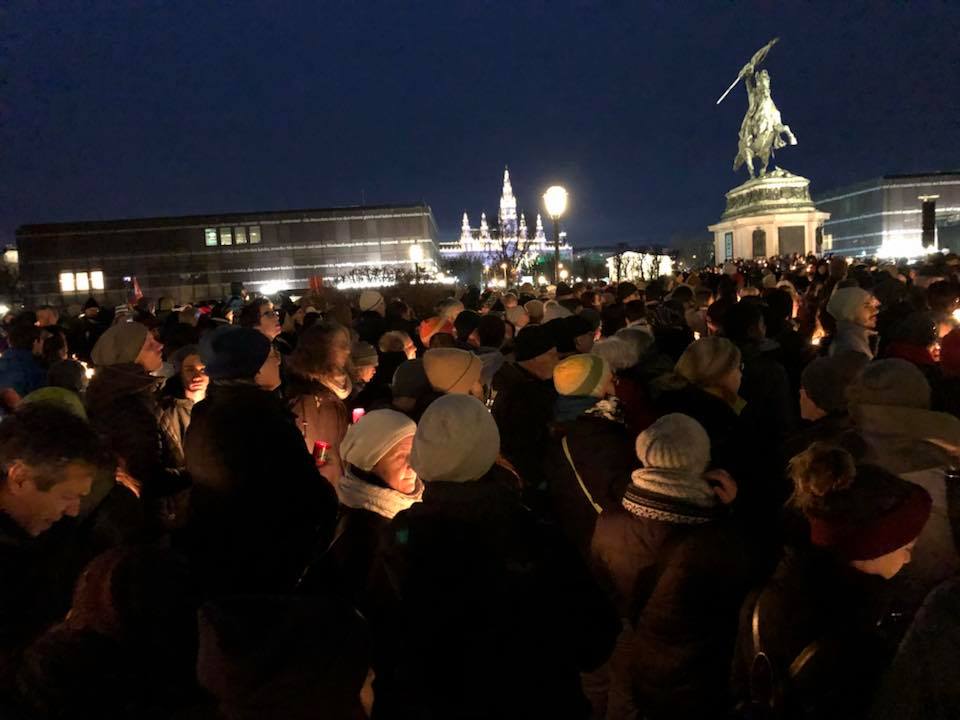 آری این نکات کوچکی از بزرگی بانوی بود که همه امروز به یاد او جمع شده بودن ، جمعیتی رنگارنگ از تمام ملیت ها و نژاد ها در یک نقطه و برای خدا حافظی با بانو Ute Bock زیبایی بی نظیری را حضور این جمعیت چند هزار نفری رقم زده بود تا چشم یاری میکرد انسان های خرد و کلانی را می دیدیم که شمع به دست در هوای نه چندان گرم ولی با قلب های بزرگ که در کنار هم گرمای باور نکردین را به وجود آورده بود .