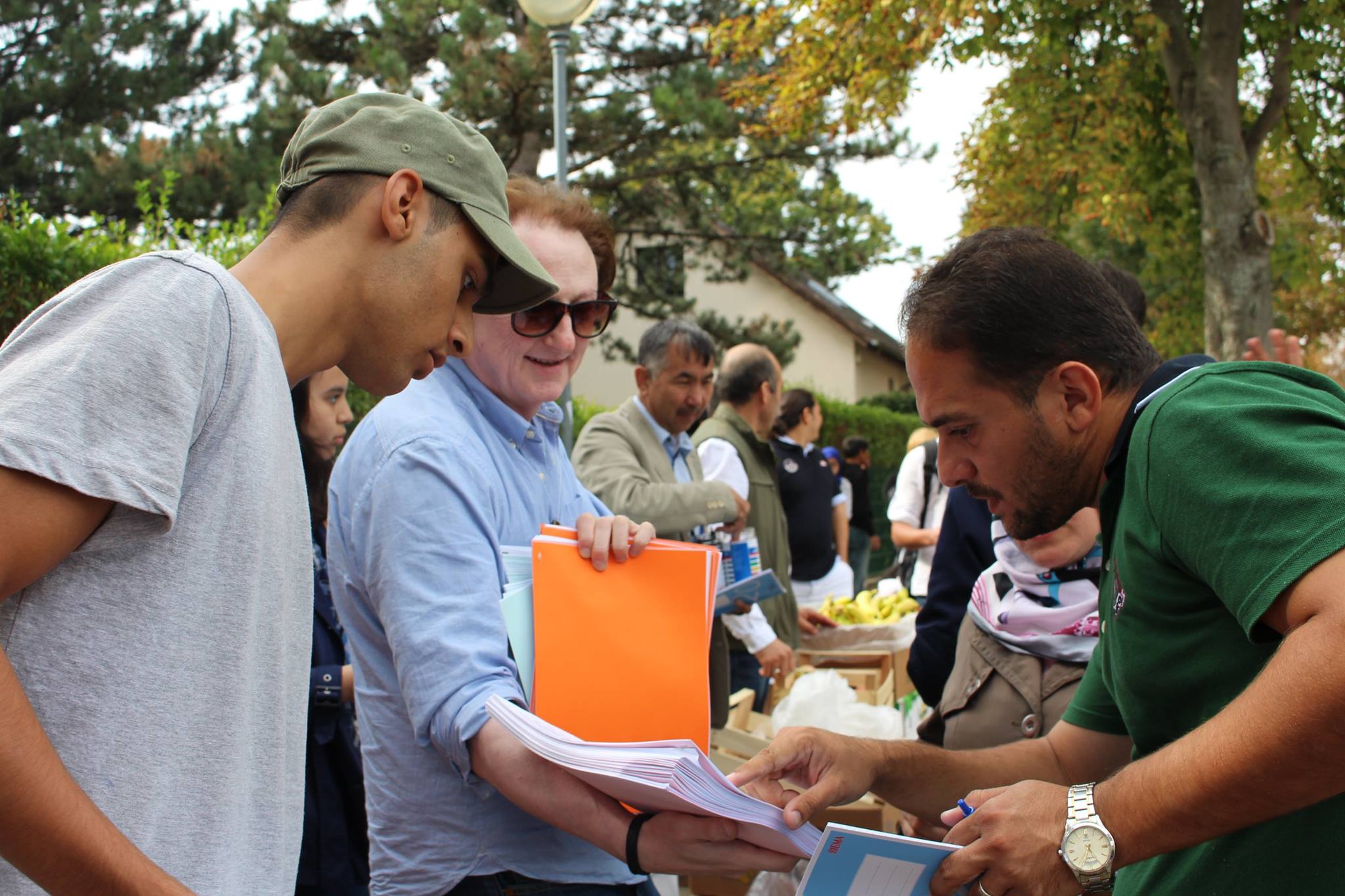 این کمک ها که شامل کتاب و قرطاسیه بود؛ برای پناهندگان تازه وارد که بنا به ضرورت و نیاز مندی آنها در نظر گرفته شده و بتازگی تدارک و چاپ شده بود، توزیع گردید. این کتابها و قرطاسیه  شامل فرهنگ لغات آلمانی به فارسی، فرهنگ لغات فارسی به آلمانی، فرهنگ لغات آلمانی به پشتو، فرهنگ لغات آلمانی به انگلیسی، فرهنگ لغات عربی به آلمانی، جزوات و رسالات یاد گیری زبان آلمانی به چندین زبان، جزوات انتخابی گلچینی از واژه ها و جملات عاجل و ضروری در چندین زبان، کتابچه های متنوع و کاغذ برای نوشتن، قلم های خود کار و غیره بود.