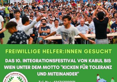 Du möchtest dich ehrenamtlich für die Flüchtlinge engagieren? Du stehst auf Spaß und Abwechslung in August und September, Lust neue Leute und Kultur kennenzulernen? Dann werde jetzt Teil des Projekts „von Kabul bis Wien unter dem Motto „Kicken für Toleranz und Miteinander“! Der Sport – und Kulturverein „NEUER START“ veranstaltet heuer zum zehnten Mal in Folge das Festival „Von Kabul bis Wien“ unter […]